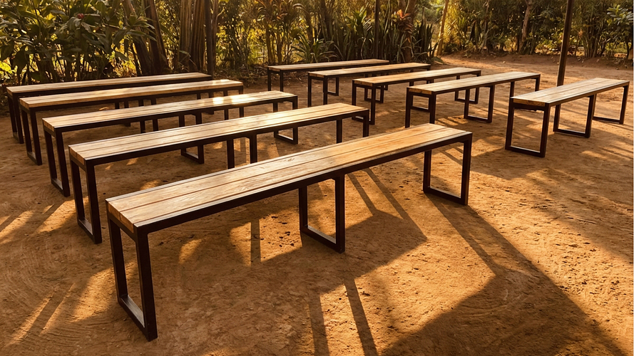 We are very fortunate to have amazing benches and tables for our new Banda that are still in excellent condition from last year's catalog! We are short just a few benches when all of the kids are at the center at the same time, and would extend more for outdoor space for sports, meals, and programs throughout the week. These benches are very sturdy made out of steel and locally made by hand.
